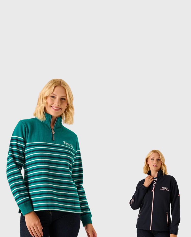 Teal Striped 1/4 Zip Sweatshirt - Ivy